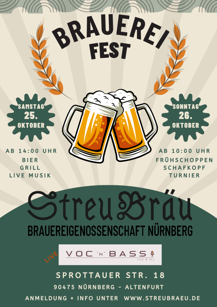 Am 25. und 26.10. feiern wir mit euch (endlich) den Einzug in unsere neue Location. Mit dabei sind Voc ’n Bass! Wir planen außerdem noch einige kulinarische Überraschungen und auch einen (Bier)sportlichen Wettbwerb. Mehr Update dazu in Kürze.
